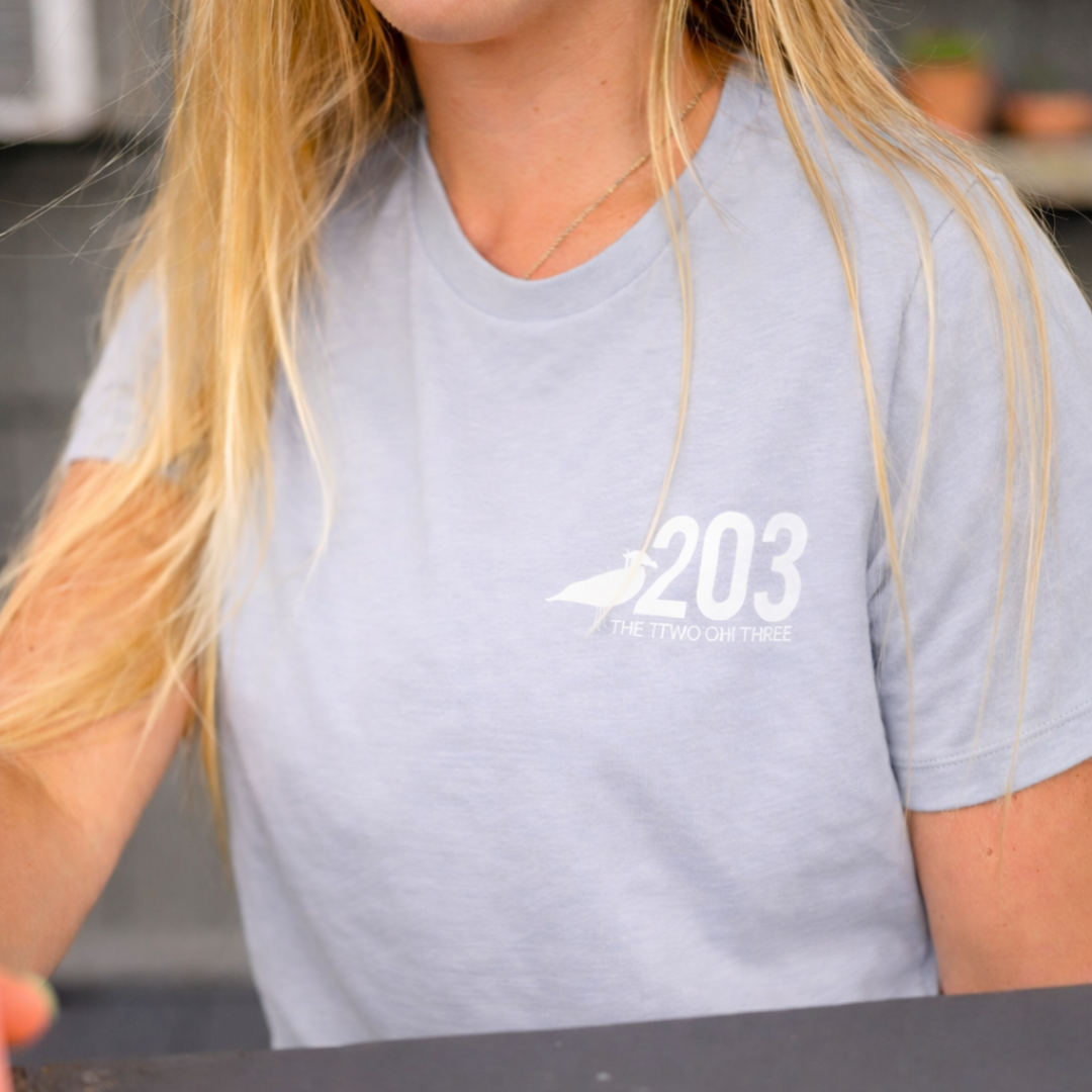 Our Women's 203 Home Tee is made for repping your roots in style. Crafted from midweight 5.3 oz, 100% combed cotton, it offers a flattering regular fit with neck ribbing and durable double-needle hems for long-lasting wear and minimal shrinkage.