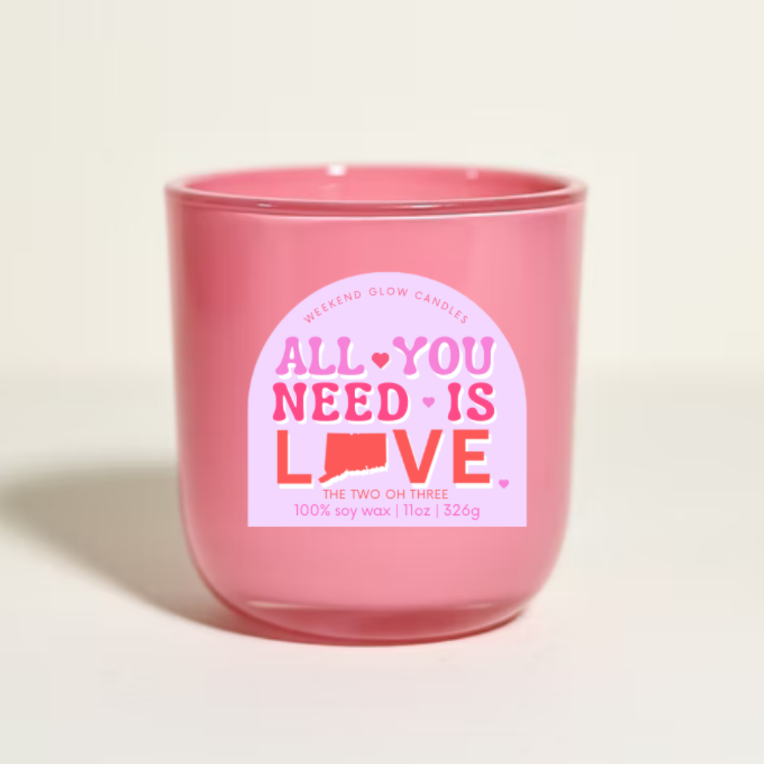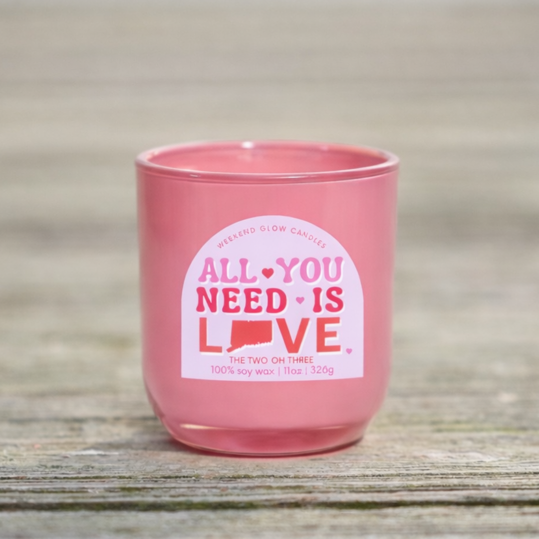 Finished with our All You Need Is Love design, it makes the perfect Valentine’s gift, self-love treat, or cozy Connecticut keepsake.