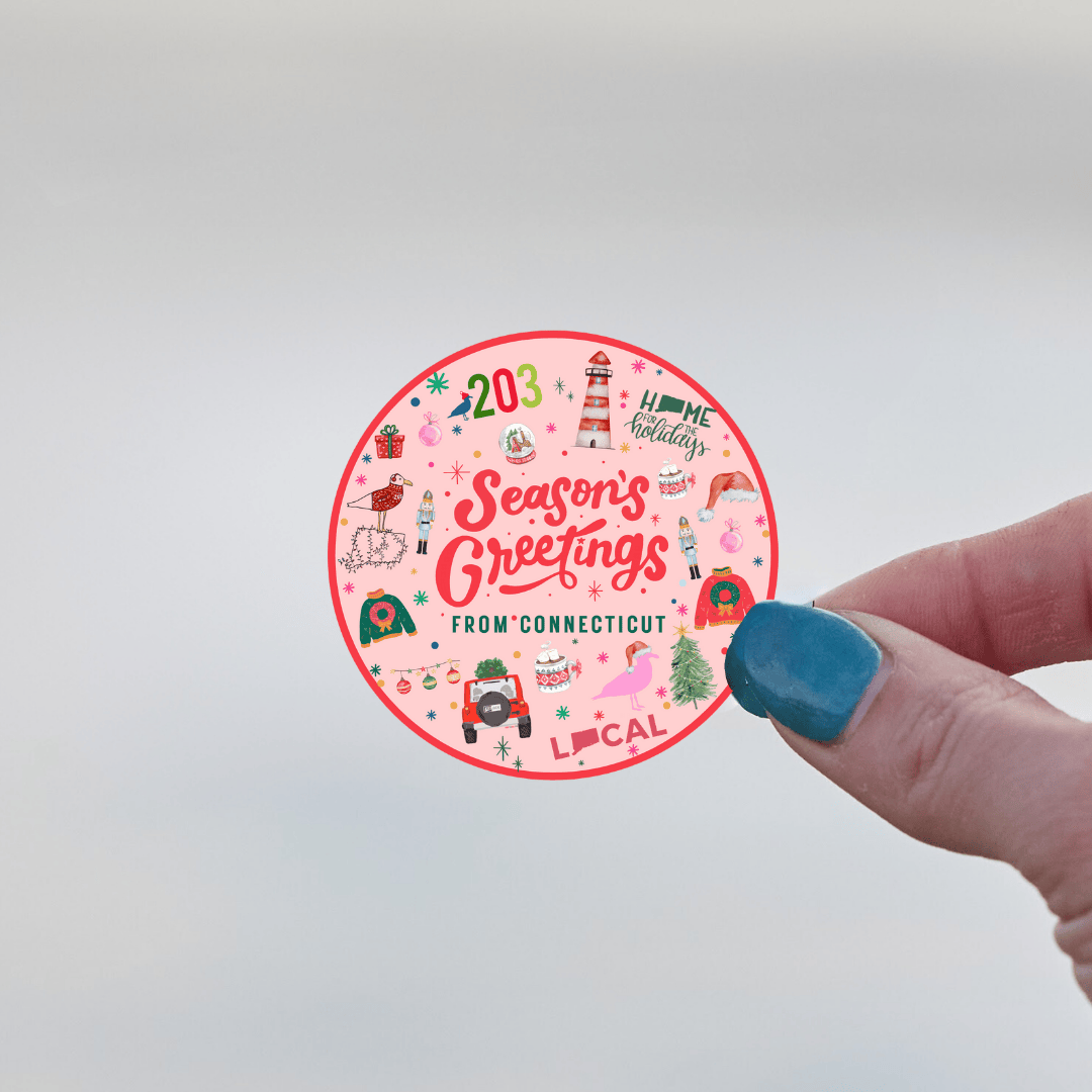 Spread holiday cheer with our Season’s Greetings from Connecticut sticker! Featuring limited-edition, Connecticut-themed holiday icons, this vibrant design is perfect for showcasing your local pride.