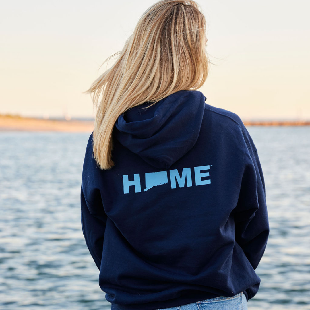 The Classic 203 Home Hoodie will be your everyday staple. Designed in navy with light blue print, it features our iconic 203 logo on the front and CT Home design on the back- making it the perfect way to rep your roots in comfort and style.