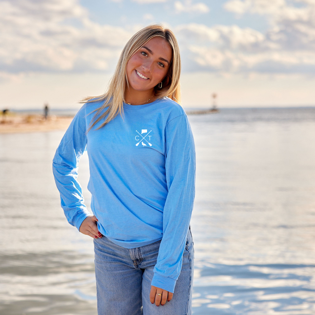 In light blue with crisp white print, this long sleeve features our CT design on the front and “Connecticut Local” graphic on the back—so you can rep your roots in comfort and style. Quite simply, it’s the softest long sleeve you’ll ever own.